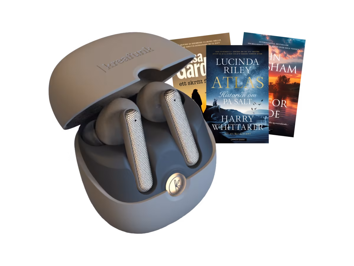 Få moderne Kreafunk Pure in-ear hodetelefoner og 3 valgfrie bøker i velkomstgave fra Bestselgerklubben – verdi opptil 2806 kr.