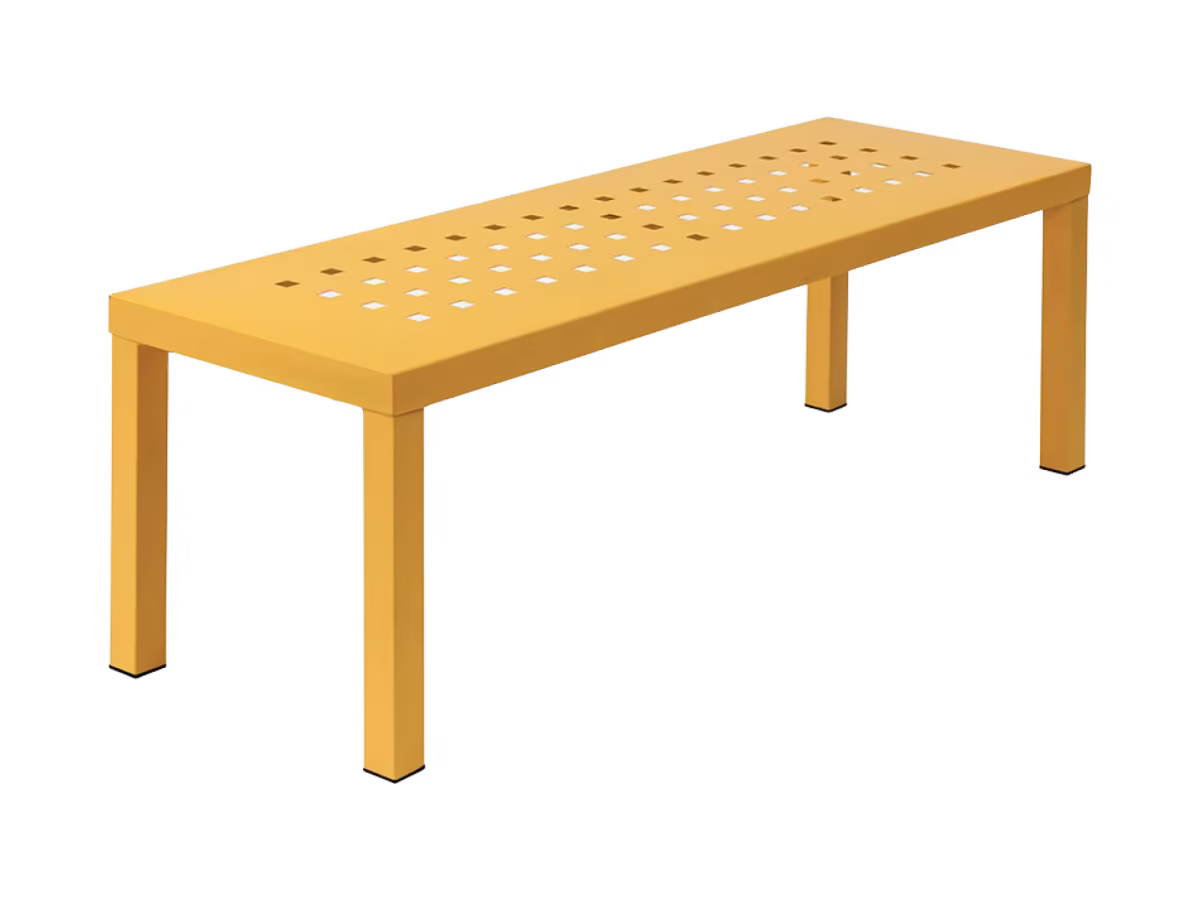 Denne stilrene benken i lekker honninggul farge passer perfekt på balkongen, i hagen, på brygga - egentlig hvor som helst.