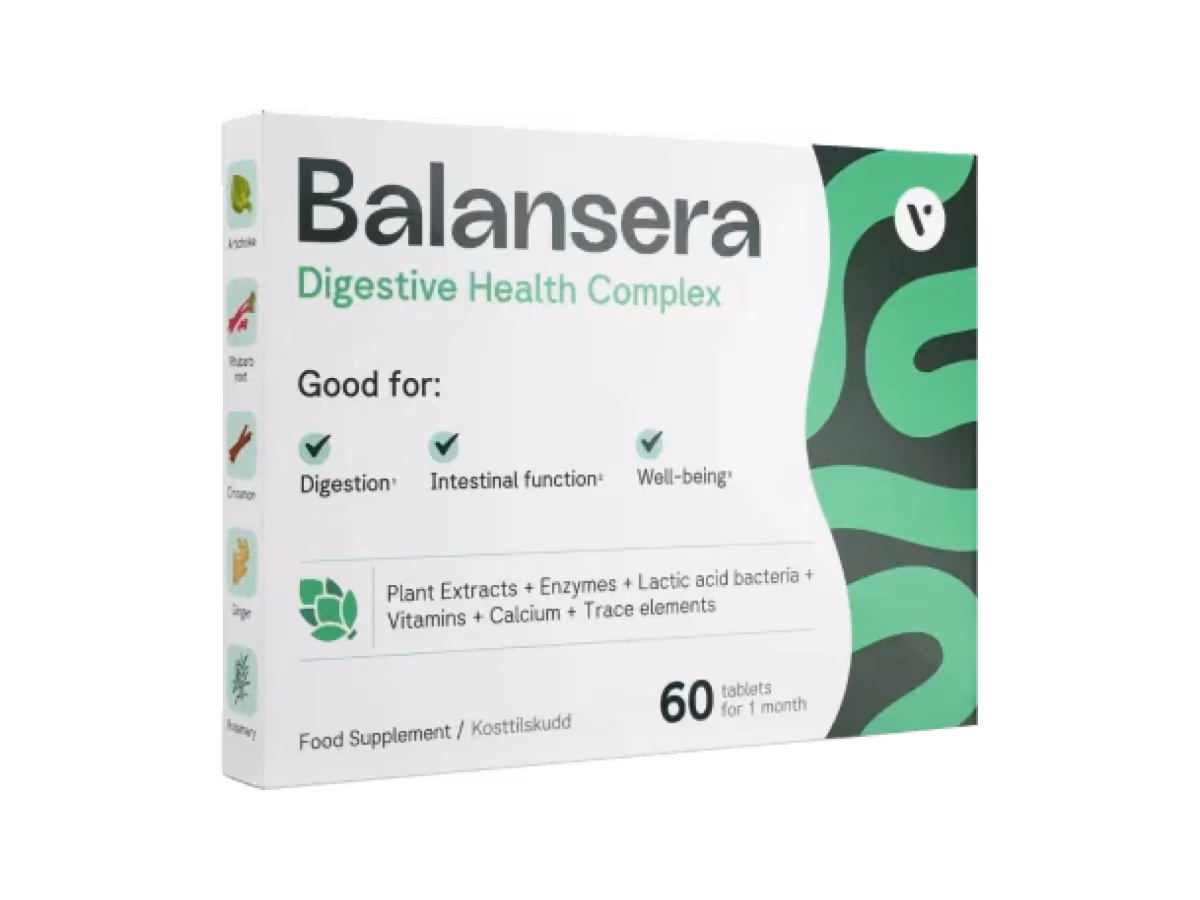Balansera er et kosttilskudd med en blanding av planteekstrakter, vitaminer, mineraler, probiotika og fordøyelsesenzymer.