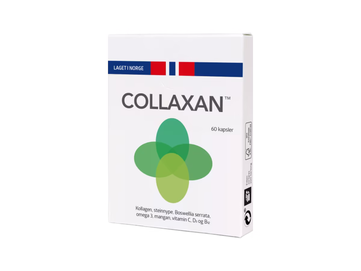 Collaxan kombinerer omega-3-fettsyrer fra virgin lakseolje, kollagen (type I og II), vitamin C, D og B12, samt mineralet mangan. I tillegg inngår planteekstrakter som Boswellia serrata og steinnype, begge kjent fra tradisjonell bruk innen helse og velvære.