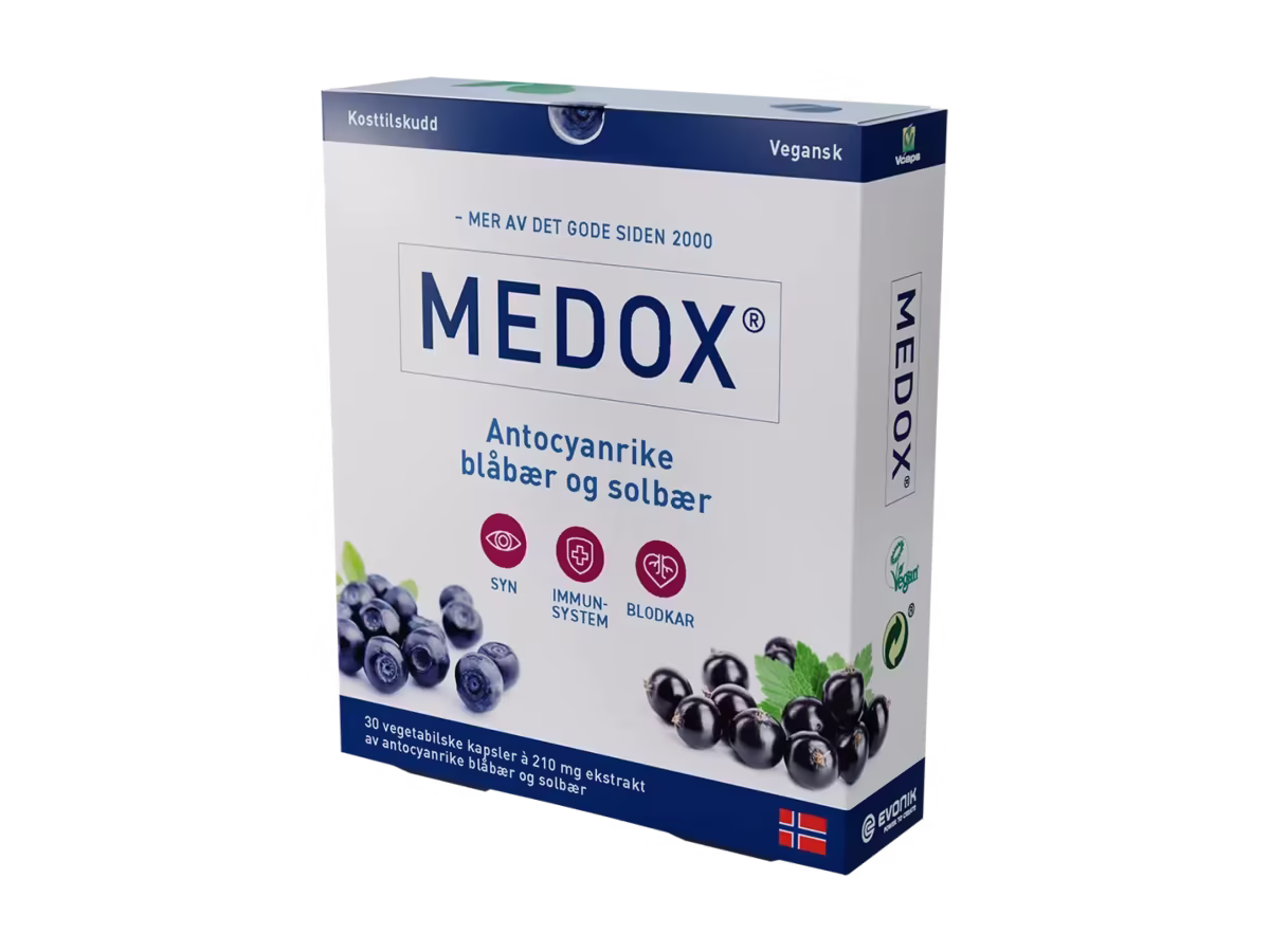 Medox er et kosttilskudd som kombinerer ekstrakter fra ville blåbær og solbær.